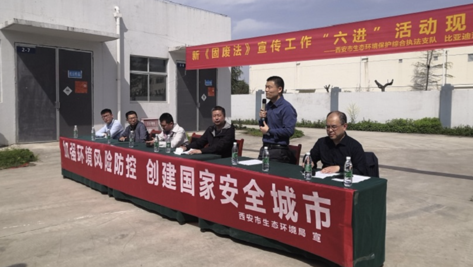 为宣传普及新《固废法》,提高社会各界对固废污染防治工作的认识,进一步推进绿色发展,2021年4月12日,西安市生态环境保护综合执法支队在比亚迪汽车有限公司组织召开新《固废法》宣传活动现场会。本次活动有20个区县、开发区执法大队负责同志,60家企业代表共计100余人参加...