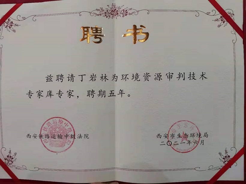 我律所高级合伙人丁岩林博士被西安铁路运输中级法院与西安市生态环境局聘请为环境资源审判技术专家