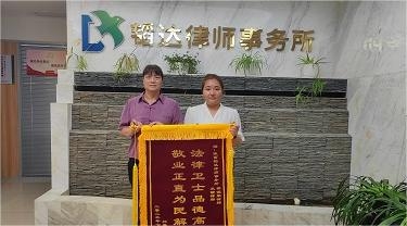 我律所梁婉荣律师、米萌律师获赠“法律卫士品德高尚 敬业正直为民解忧”锦旗