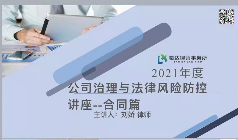 刘娇律师对公司治理与法律风险防控中关于合同的相关问题也进行了专业的讲解。刘娇律师结合相关案例,从合同签订过程中的风险防范、合同签订形式的审查、合同主要条款的审查三个方面做了深入浅出的讲解,线下参会人员积极互动,该场培训得到了大家一致好评。