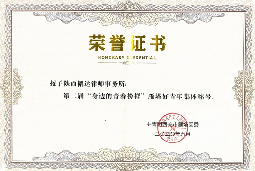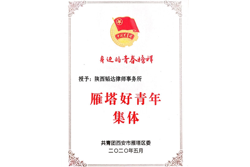 - 雁塔好青年集体称号荣誉证书