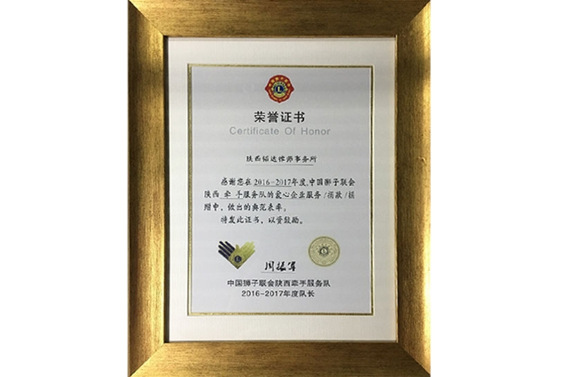 - 《中国律所百强》荣誉证书