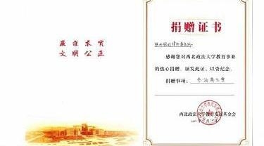 - 西北政法大学“立心”奖学基金捐赠证书
