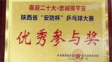 - 陕西省“安防杯”乒乓球大赛优秀参与奖